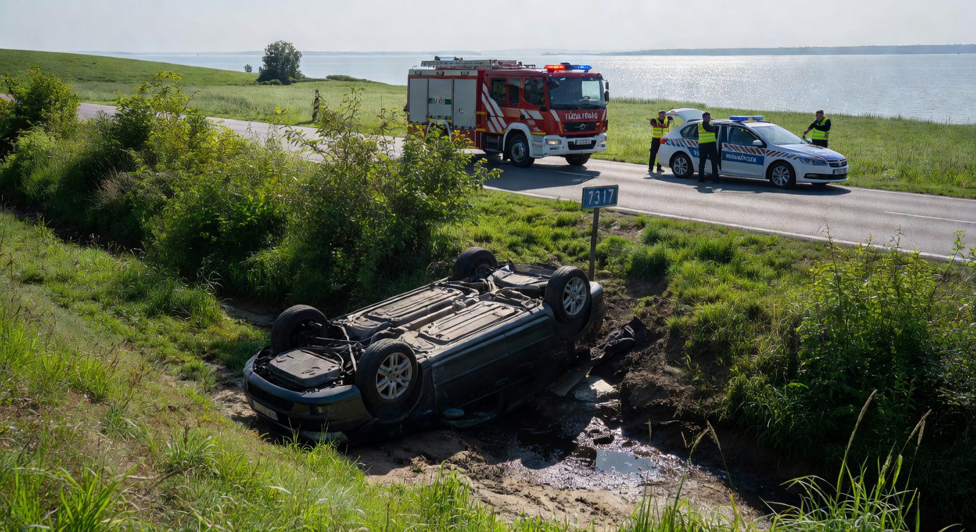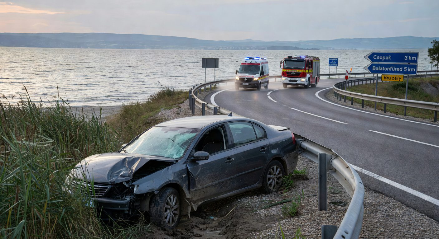 Drámai zuhanás: autó árokba Csopak-Füred között! 🚗😱