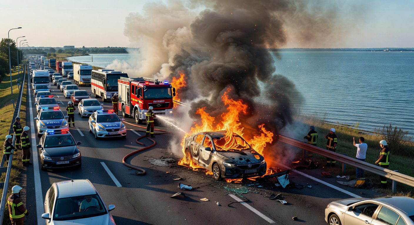 Pánik az M7-esen: Lángoló autó Balatonőszödnél! 🔥