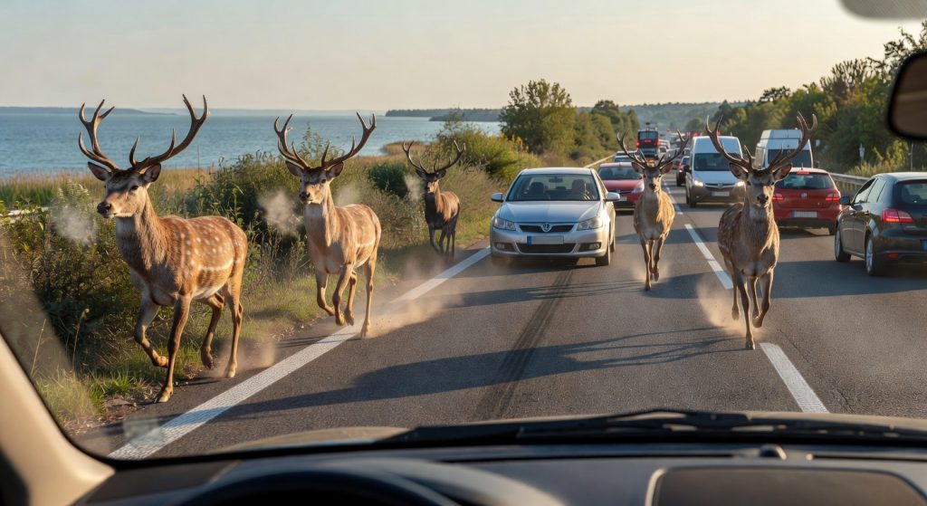 Balatonfenyves ikonikus déli parti nyaralóhelyén, a 7-es főút balatoni szakaszán pattanásig feszült pillanatokat örökített meg egy autós: öt szarvas 🦌 rohant ki hirtelen az útra, komoly balesetveszélyt okozva. A videófelvétel gyorsan terjed a közösségi médiában, és rávilágít a Balaton-régió közlekedési kihívásaira, ahol a természet közelsége mindennapos meglepetéseket tartogat.